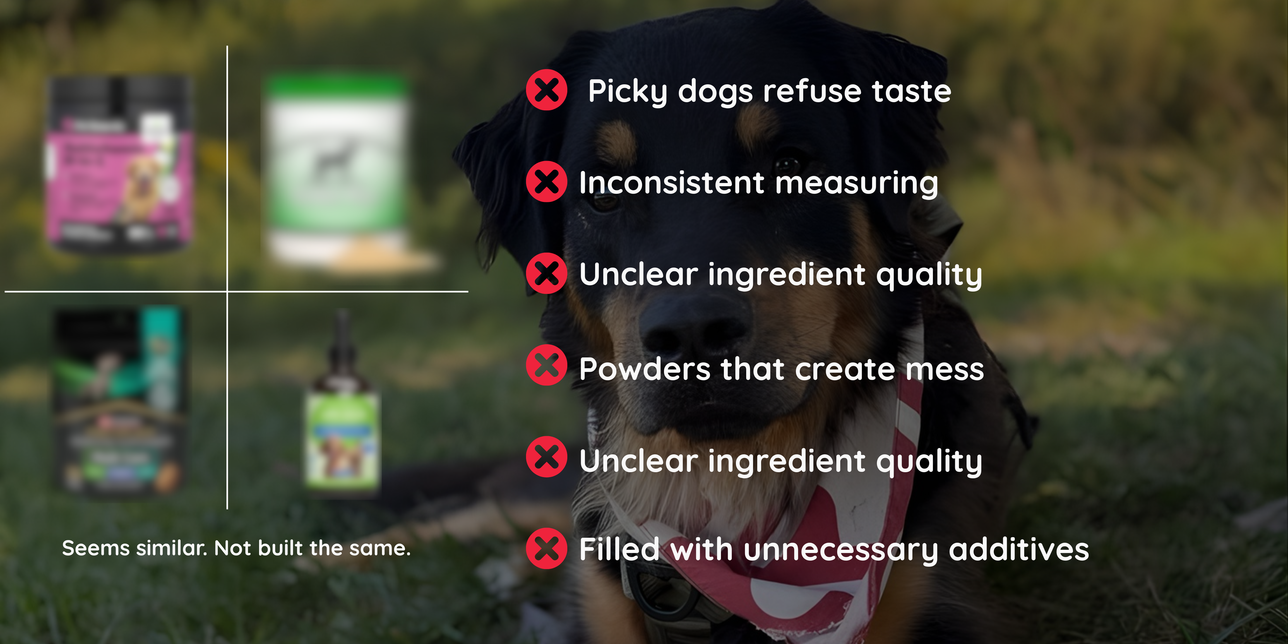 Results can vary depending on your dog’s age, breed, health, and lifestyle. Most dogs begin to see benefits with consistent daily use over 60–90 days. In an internal pet parent survey, 87% reported noticeable results after 3 months of daily use.